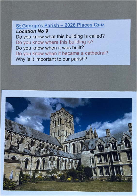 Fourthly – visit the place – so no great surprise but Location 9 is our wonderful Cathedral – a visit there and a chat with guides or looking at the way things are labelled there will help. Similarly, the other churches included in other questions are worth visiting as they have their own history pamphlets.